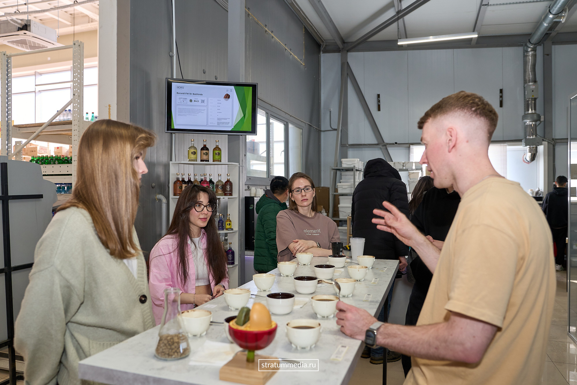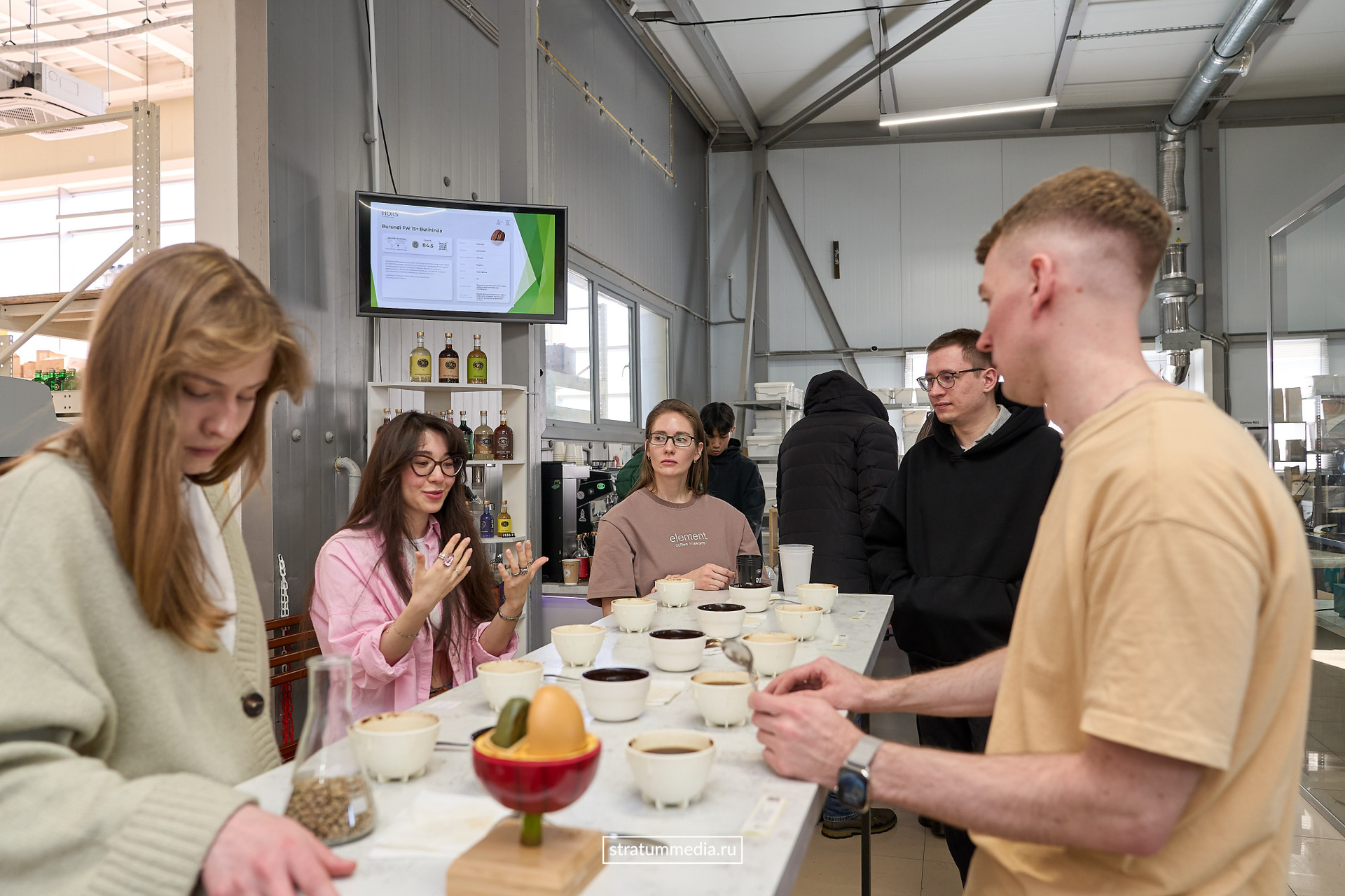 Команда Stratum Media обожает пить кофе, поэтому, 9 марта зашли к нашим друзьям на производство по обжарке кофе Coffee Element. После прошедшей накануне метели было сложно добраться, но мы это сделали и вместе с самыми заядлыми кофеманами прослушали презентацию о новых сортах кофе, которую завезли и обжарили на своем производстве Coffee Element.